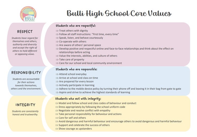 Bulli High has procedures in place to support and monitor student attendance, core values and behaviours.