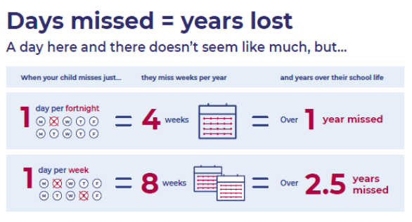 Education for your child is important and regular attendance at school is essential for your child to achieve their educational best and increase their career and life options. When your child attends school every day, learning becomes easier and your child will build and maintain friendships with other children.